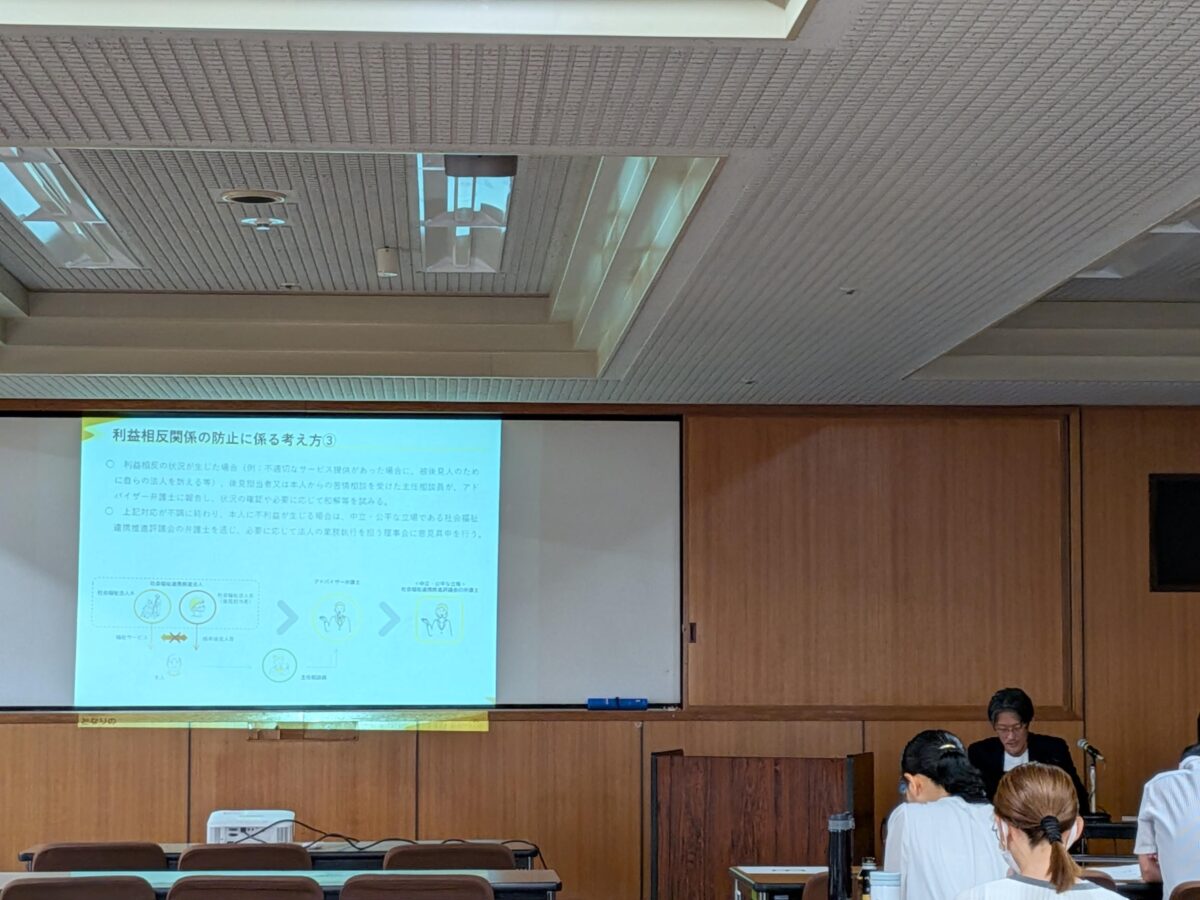 講師としてお招きいただき、社会福祉連携推進法人となりのの今までの活動及び事例の報告をさせていただきました。
